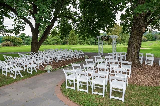 One of the biggest draws of a golf course wedding is the outdoor ceremony. Couples can exchange vows on a lawn overlooking the course, on a patio surrounded by gardens, or at other scenic points across the property.