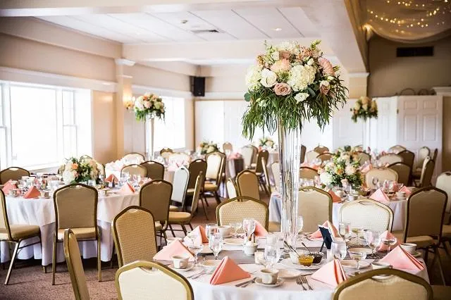 Most golf courses include a clubhouse or ballroom designed for receptions. These spaces typically feature: